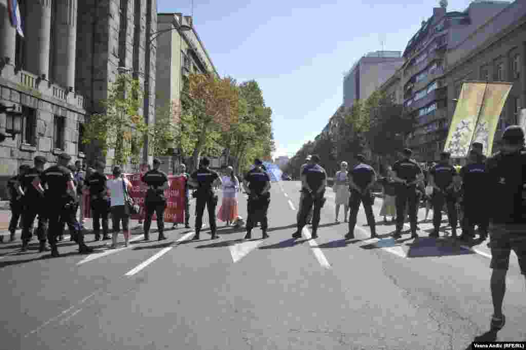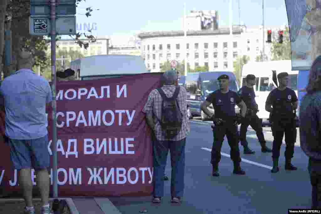 Oko sat vremena pred otvaranje ulaza na Prajd, u centru Beograda, ispred ulaza u Ustavni sud, na uglu Bulevara Kralja Aleksandra i Takovske ulice, okupilo se tridesetak ljudi koji se protive održavanju manifestacije, među kojima je i nekoliko osoba u svešteničkim odorama.
