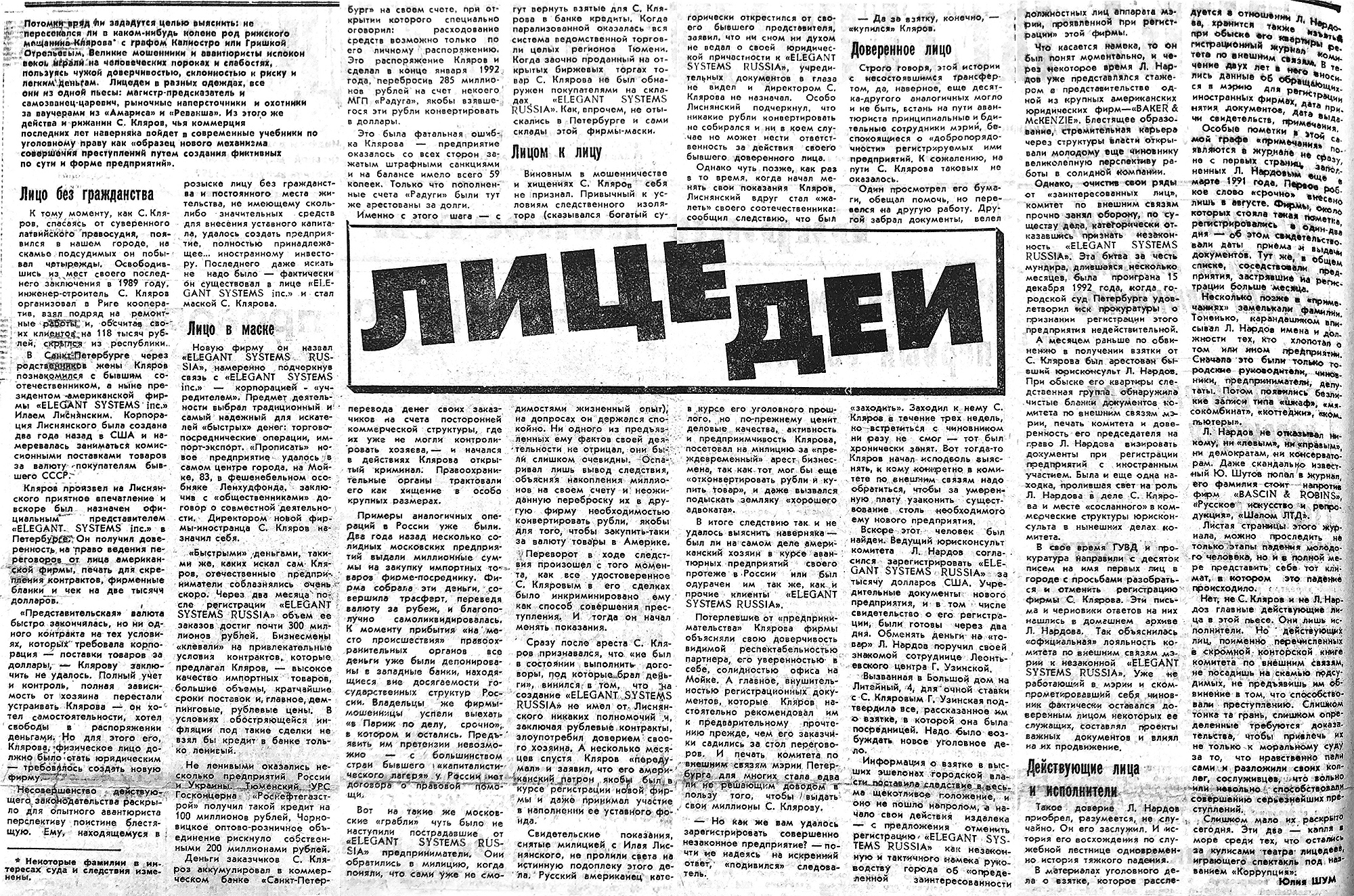 Jedini zvaničnik koga je list imenovao bio je viši saradnik gradonačelnika Sobčaka, Jurij Šutov, koji je kasnije postao vatreni kritičar, kako gradonačelnika, tako i predsednika Putina.