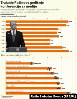 Zbog mjera uvedenih tokom pandemije, glasnogovornik Kremlja Dmitri Peskov rekao je dan ranije da će samo oko 500 domaćih i stranih novinara biti pozvano da učestvuje. Ranijih godina na konferenciji je učestvovalo više od hiljadu novinara.