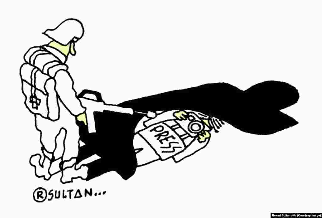 Karikaturista Rešad Sultanović ustupio je RSE svoje ilustracije rađene u znak solidarnosti sa ubijenim kolegama pariškog satiričnog časopisa "Charlie Hebdo", a koje su objavljene u mnogim svjetskim medijima i portalima.