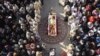 Građani okupljeni ispred hrama ceremoniju sahrane pratili su na video bimu.