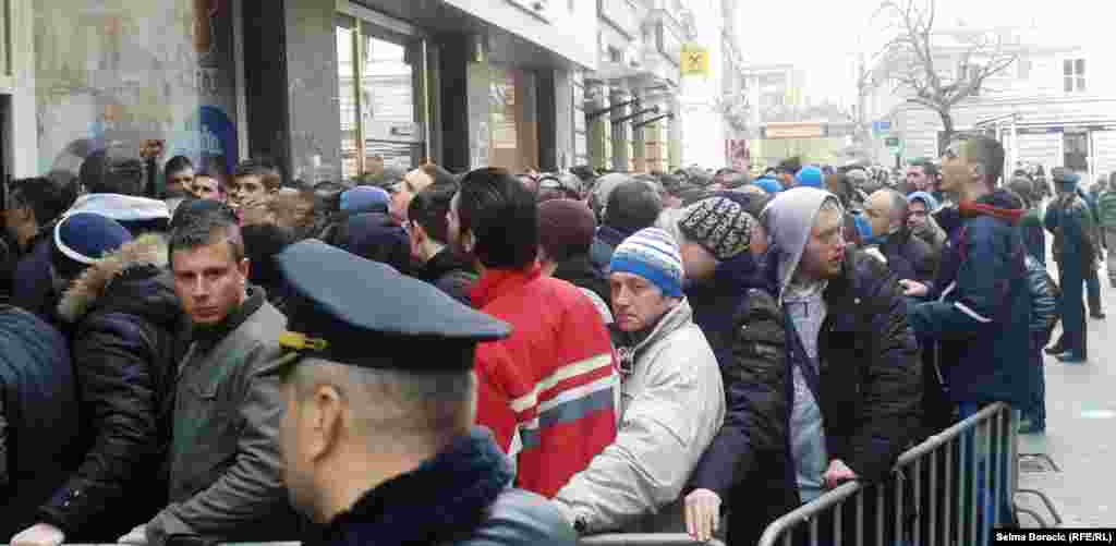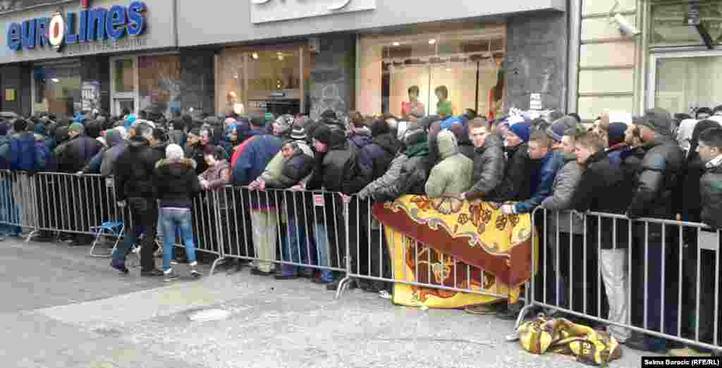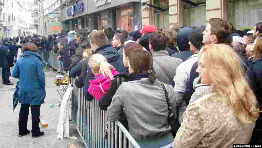 U srijedu, 6. marta, je počela prodaja karata za utakmicu fudbalskih reprezentacija BiH - Grčke, koja će biti odigrana u Zenici 22. marta. U prodaju je pušteno 6.000 karata, a nekoliko stotina navijača iz cijele BiH provelo je noć na betonu sarajevske ulice Ferhadija, čekajući u redu ispred poslovnice. Foto: RSE / Selma Boračić