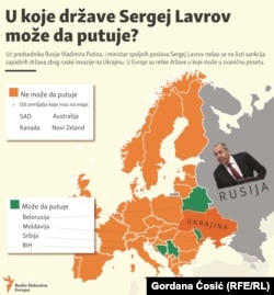 Lavrov je zajedno s ruskim predsjednikom Vladimirom Putinom na popisu sankcija mnogih zapadnih država zbog invazije Ukrajine. Jedine zemlje u koje mogu putovati u Evropu su Bjelorusija, Moldavija, Srbija i Bosna i Hercegovina.