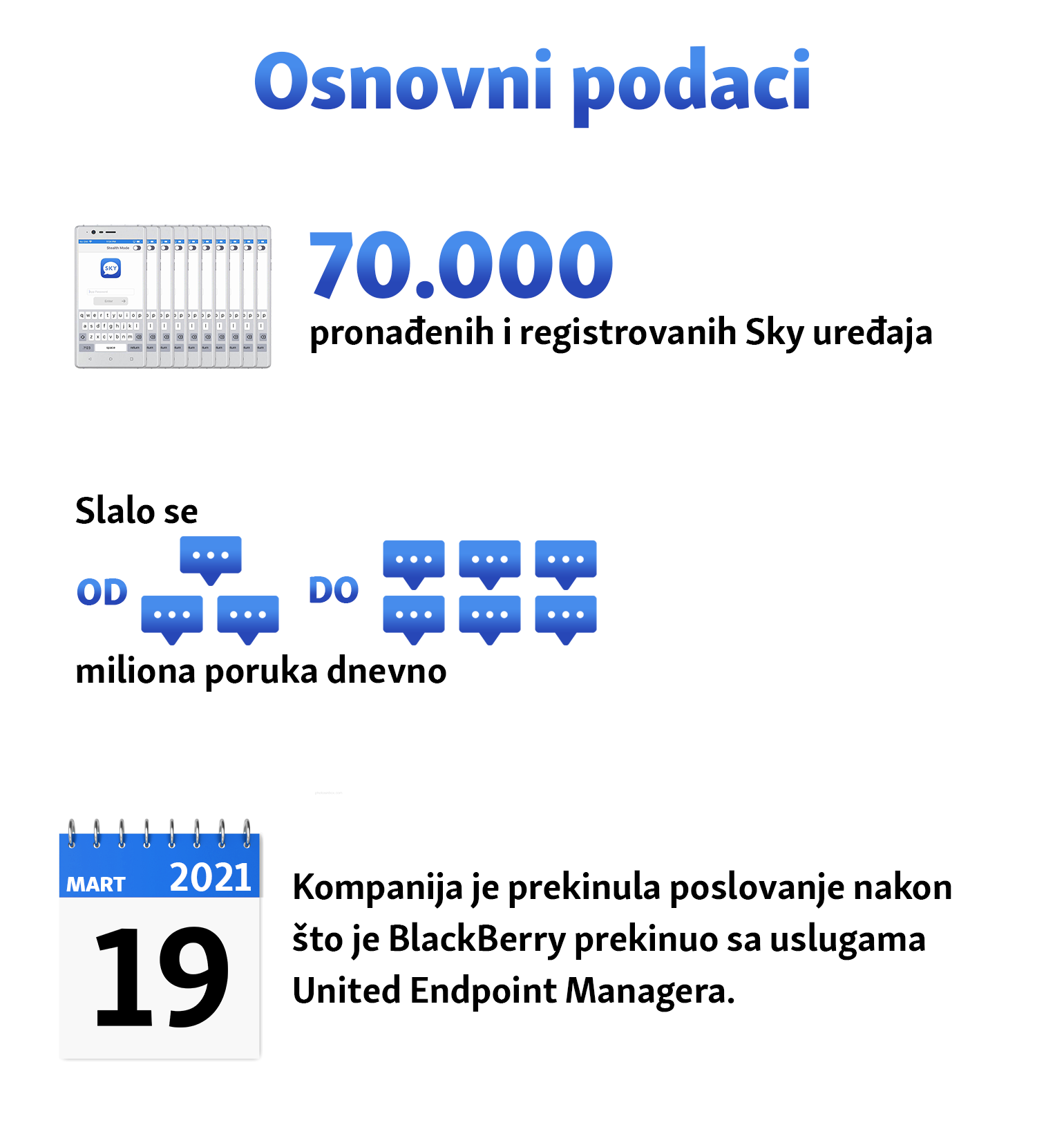 Prema belgijskim tužiocima, postoji više od 70.000 Sky ECC uređaja aktivnih širom svijeta, uglavnom u Evropi, Sjevernoj Americi, Centralnoj Americi, posebno u Kolumbiji i na Bliskom istoku.