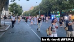 Grupa demonstranata koja je do skoro blokirala raskrsnicu kod Vukovog spomenika uputila se ka užem centru grada gde će, kako su najavili, nastaviti blokade, javlja reporterka RSE.