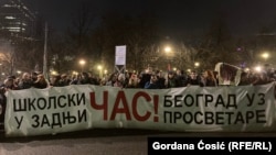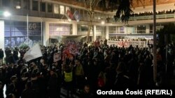 Studenti su od Vrhovnog javnog tužilaštva došli do zgrade javnog servisa Radio-televizije Srbije, gde uzvikuju "Pustite nas uživo".
