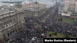 Oko stotinu građana koji su se priključili pozivu studenata na generalni štrajk okupilo se 24. januara ispred Centra za kulturu u beogradskom naselju Rakovica u kojem se održala tribina vladajuće Srpske napredne stranke.