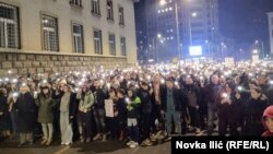 Studenti kojima su se priključili građani skandiraju "Nećete nas gaziti!", "Ispunite zahteve!" i "Ruke su vam krvave!", a jaku buku prave pištaljakama, trubama i bubnjevima, javlja Beta.