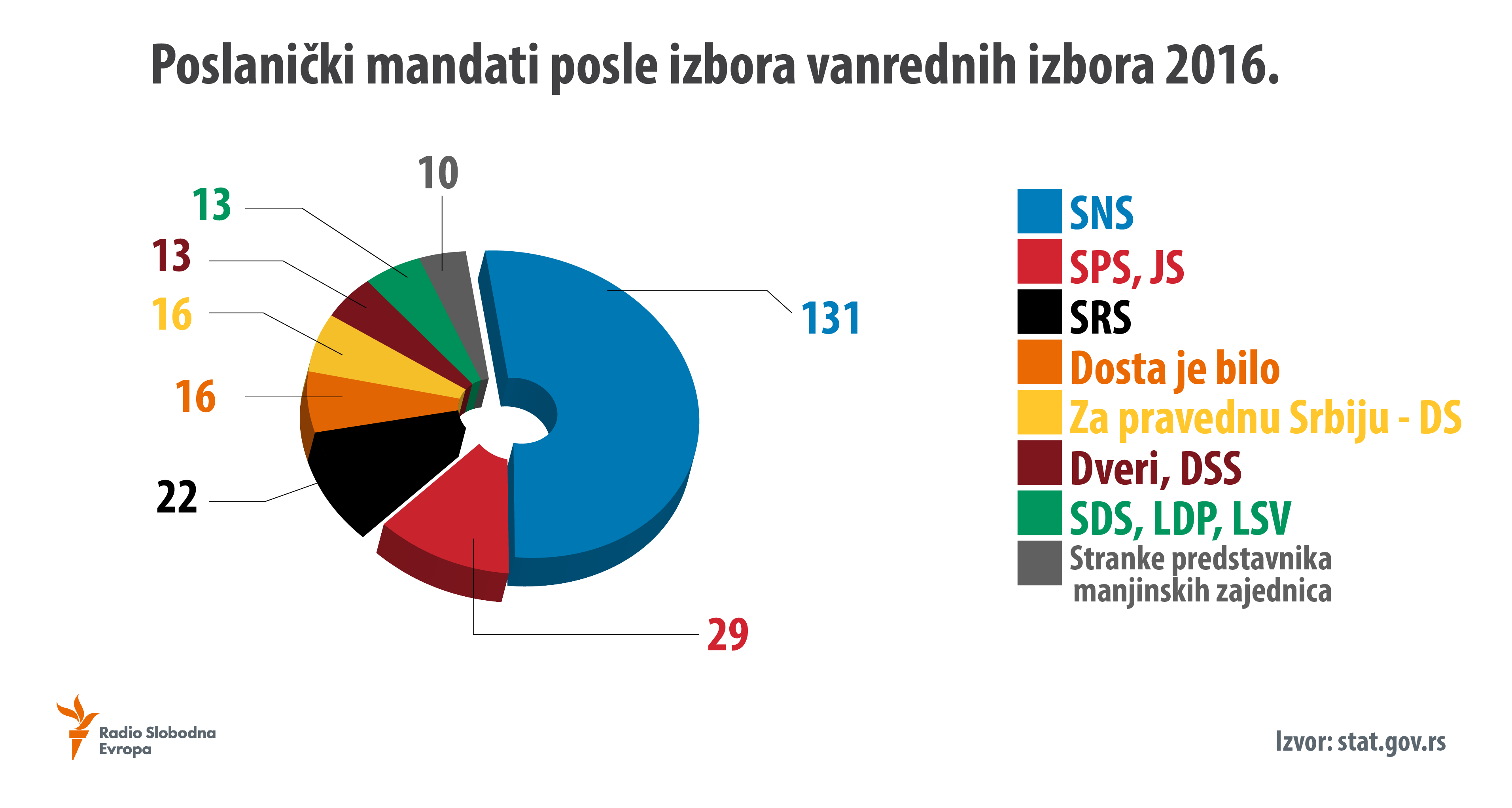 Na izborima 16. marta 2014. SNS je osvojila ubedljivu većinu, svoje glasove je udvostručila. Uz njih su u parlamentu ostale još samo tri stranke odnosno koalicije, ne računajući stranke manjinskih zajednica.