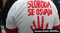 Okupljeni zahtevaju puštanje uhapšenih aktivista na slobodu. Smatraju da je reč o "političkom progonu" neistomišljenika vlasti, te da pokretanje postupka protiv njih nema zakonskog osnova.