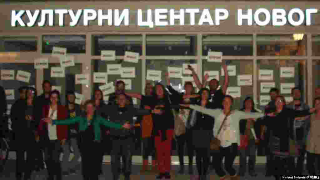 Novosadski intelektualci, građani i aktivisti nevladinog sektora pozvali su na bojkot Kulturnog centra Novog Sada. Oni su poručili da ne pristaju na zabrane i cenzuru kulturnih i aktivističkih događaja. Foto: RSE / Norbert Sinkovi', 24. oktobar 2013.