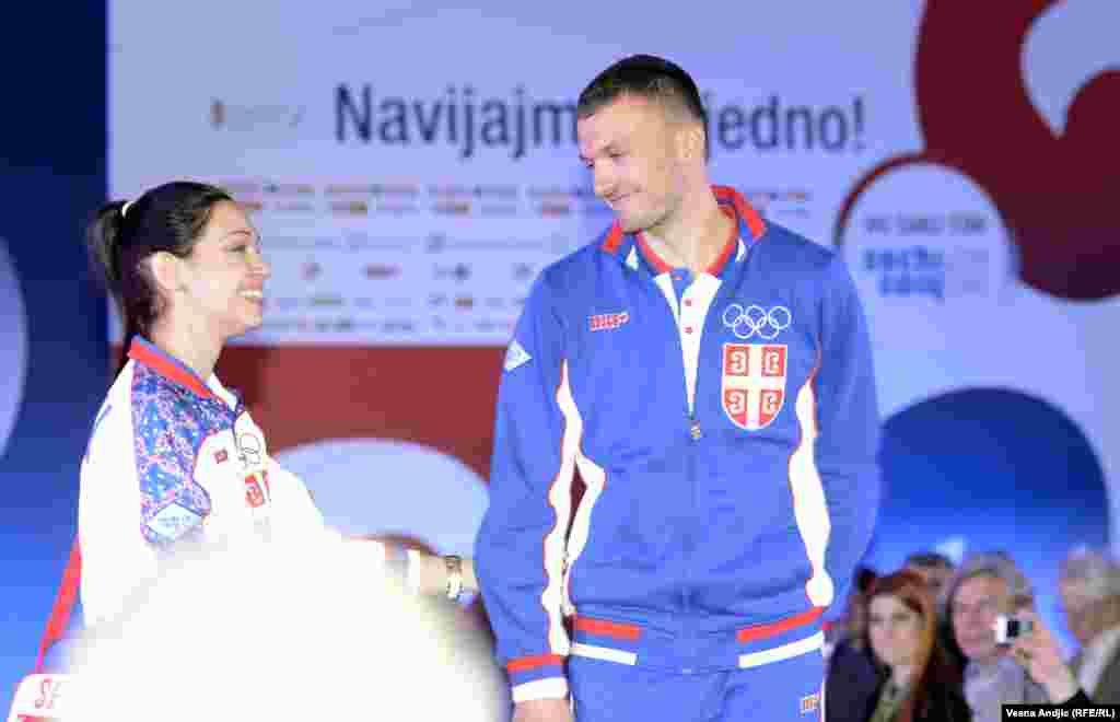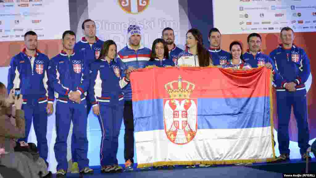 U Beogradu je predstavljena reprezentacija Srbije koja će učestvovati na Zimskim Olimpijskim igrama u Sočiju. Na svečanoj ceremoniji Igara državnu zastavu nosit će Milanko Petrović, bijatlonac. Foto: RSE / Vesna Anđić, 3. februar 2014.