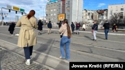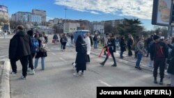 Pred kraj blokade studenti stoje uz ogradu nadvožnjaka i aplauzom pozdravljaju automobile koji prolaze autoputem i trube u znak podrške.
