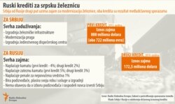 Srbija već isplaćuje jedan kredit Rusiji, podignut u istu svrhu – za železnicu. I on je poput novog, rezultat međudržavnog Sporazuma dve Vlade. Potpisan je 11. januara 2013. na iznos od 800 miliona dolara (oko 722 miliona evra) za posao koji je u ukupnoj vrednosti dogovoren na 941 milion dolara (oko 850 miliona evra).