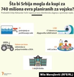 Iz budžeta Srbije za 2024, prema rečima Vučića, bilo je opredeljeno 360 miliona evra za naoružavanje.