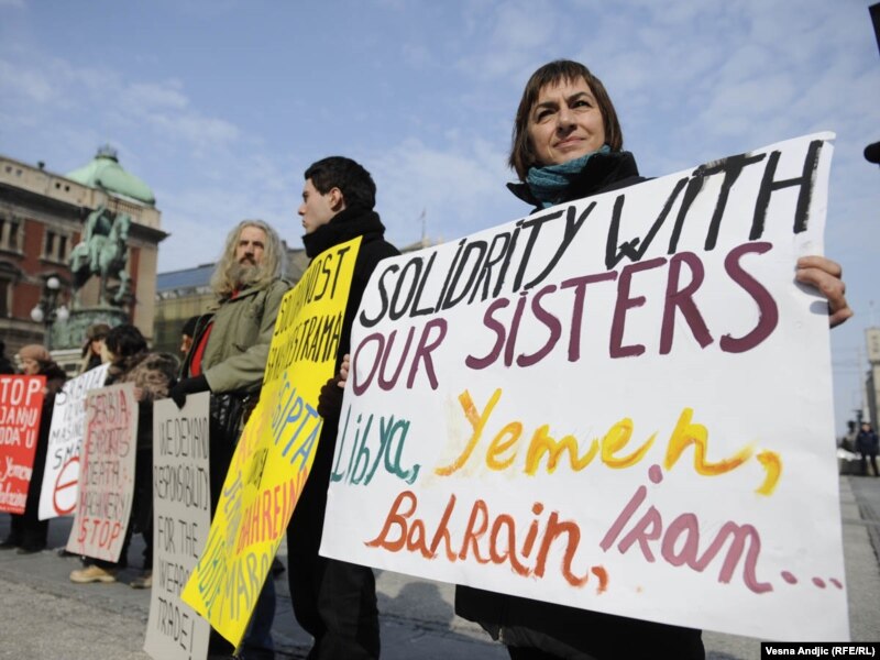 Nevladina organizacija "Žene u crnom" zatražila je na protestnom skupu u centru Beograda da se prekine sa naoružavanjem pojedinih država Bliskog istoka i severa Afrike, a naročito Libije sa kojom je vojna industrija Srbije u proteklih nekoliko godina ugovorila poslove vredne više od milijardu dolara.