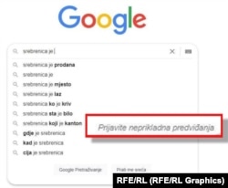 Nakon upita Radija Slobodna Evropa (RSE) Google je uklonio predloženi rezultat na engleskom jeziku.