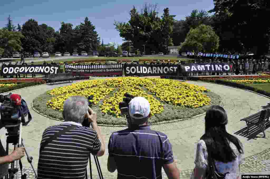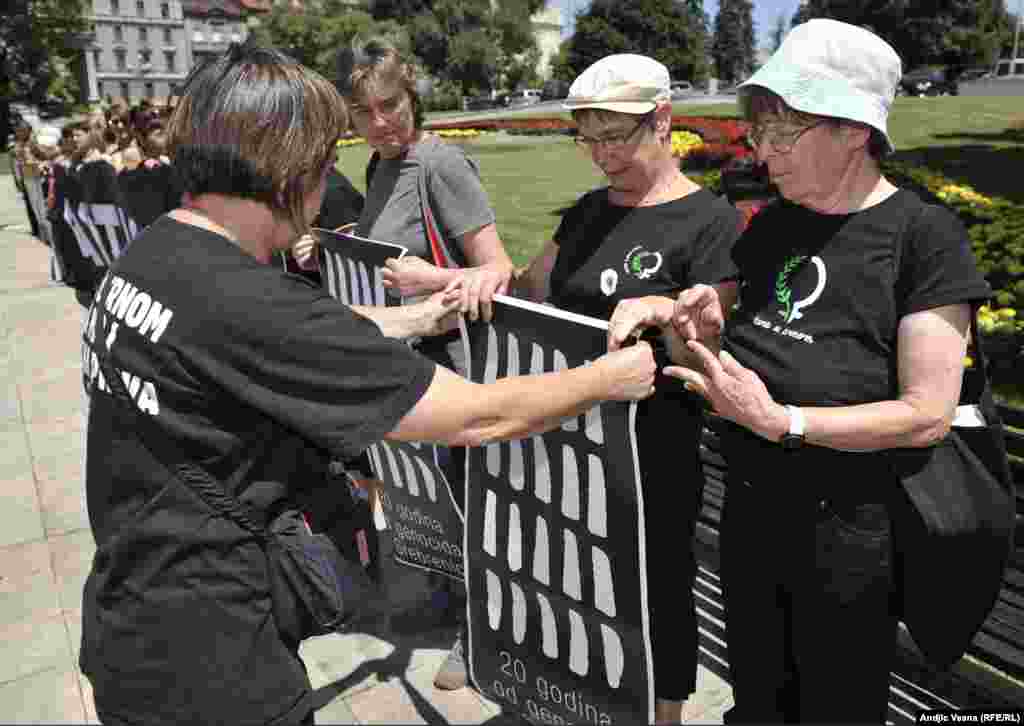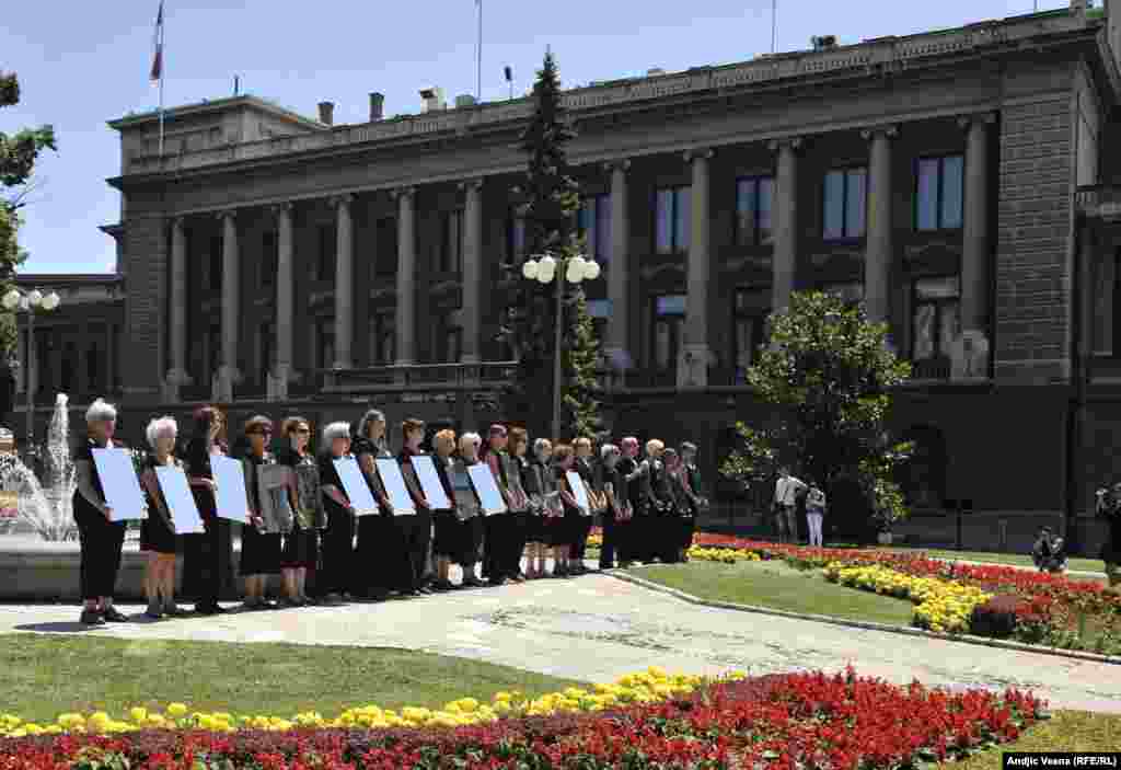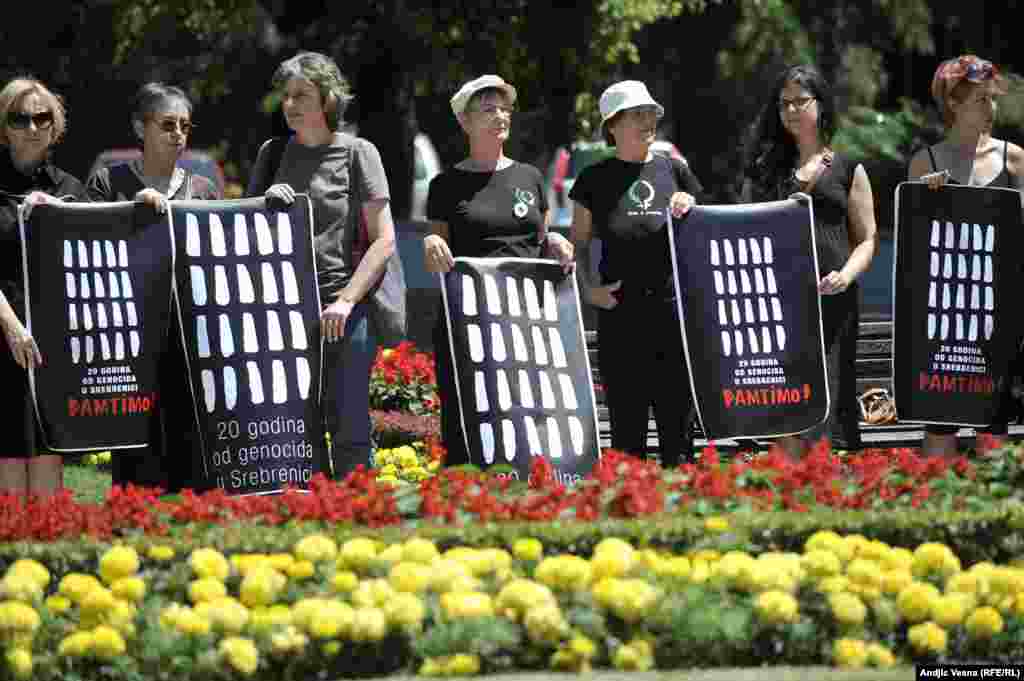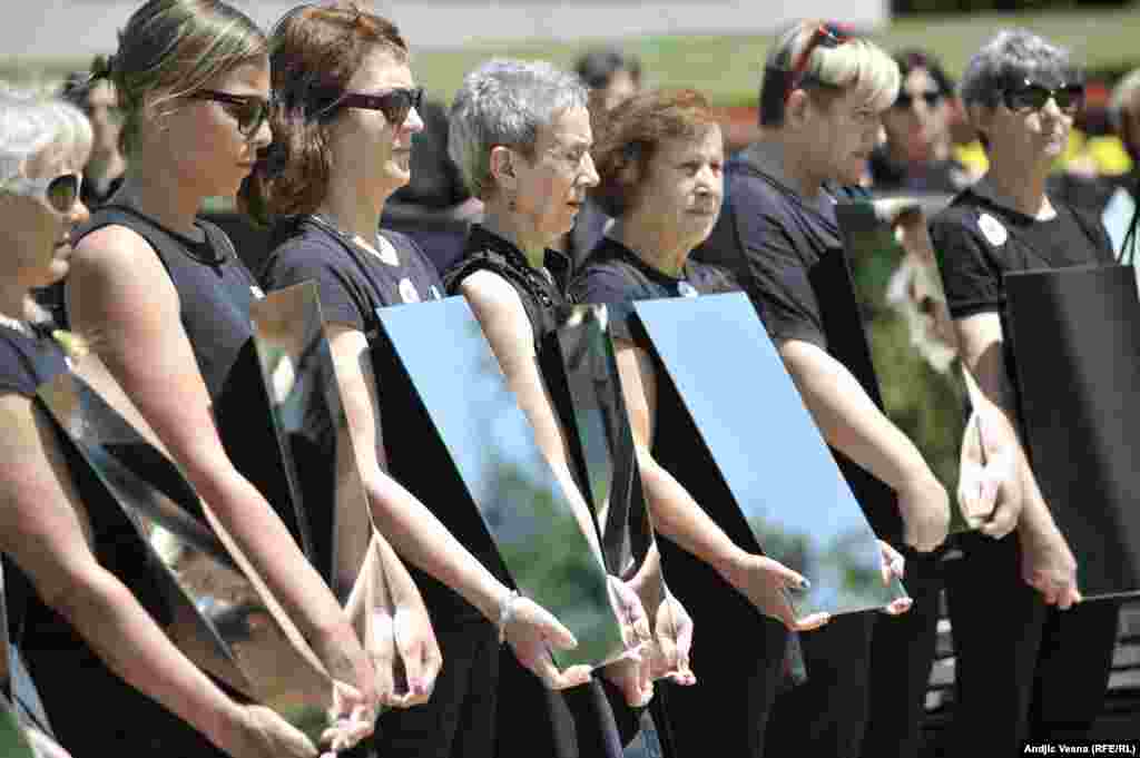 Na dan kada su za 20. godišnjicu genocida u Srebrenici zabranjena sva okupljanja u Beogradu, "Žene u crnom" su ispred Predsedništva Srbije organizovale performans "Kada Srbija pogleda u ogledalo videće Srebrenicu: 20 godina - 20 ogledala".