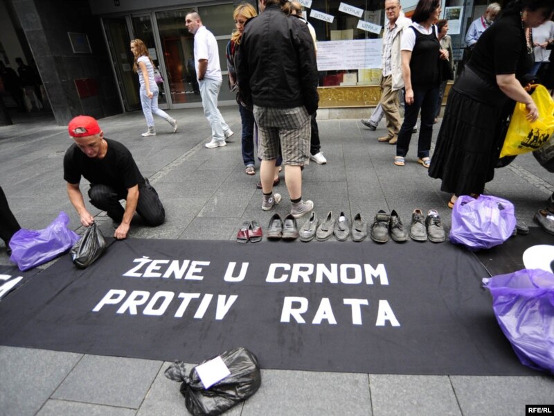 Cipele su, uz poruke koje su u njima ostavili, doneli građani Srbije podržavajući tako inicijativu mirovne mreže “Žene u crnom” za podizanje spomenika u Beogradu ubijenim Bošnjacima.
