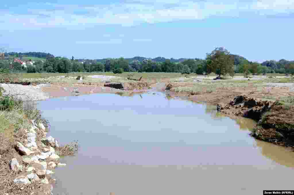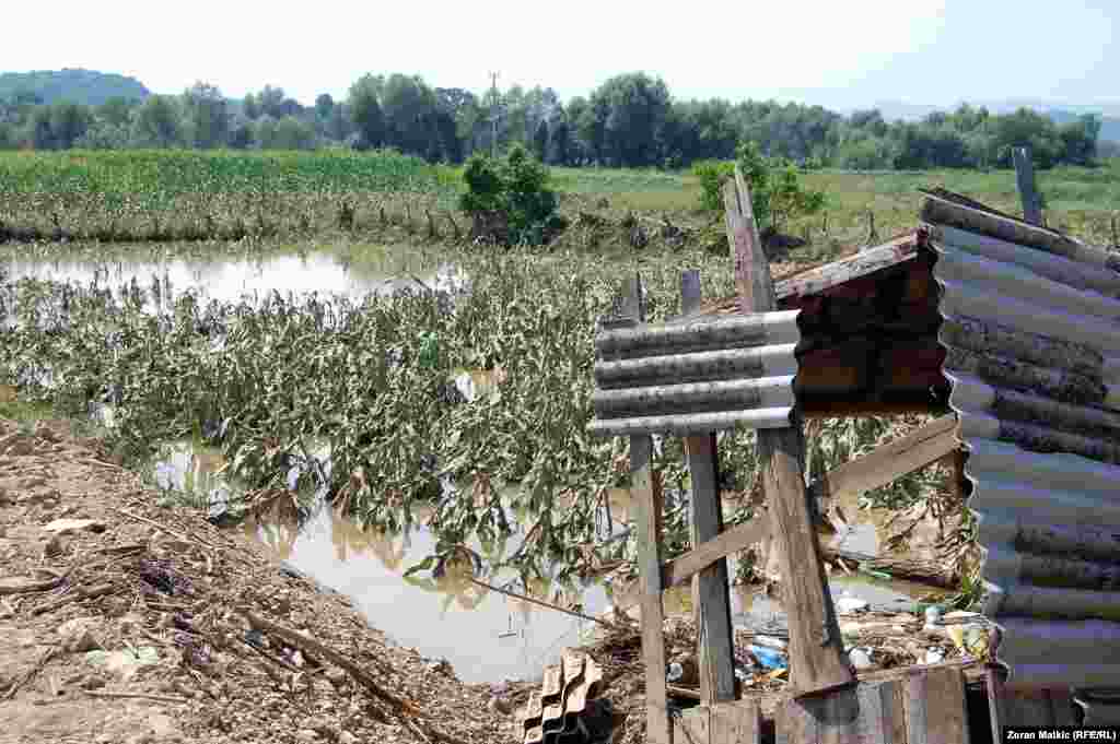 Vodena stihija rijeke Tinje i njenih pritoka u općini Srebrenik je za samo nekoliko sati poplavila blizu tisuću obiteljskih kuća i na desetine privrednih objekata. Voda je poplavila i stotine hektara poljoprivrednog zemljišta. RSE/Foto: Zoran Matkić