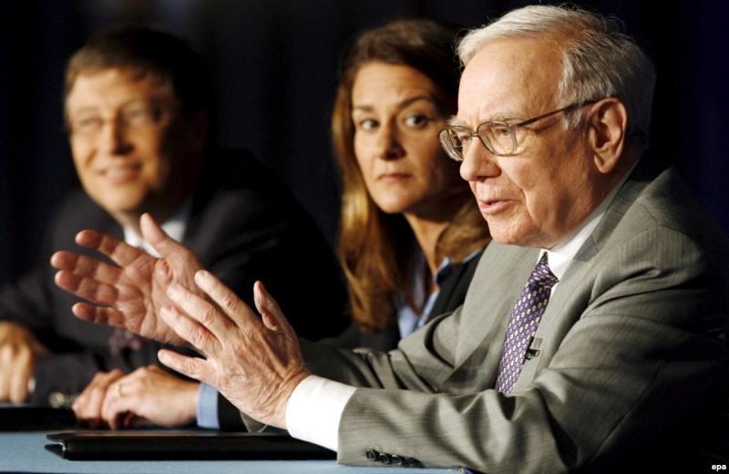Warren Buffett (poznati investitor) i Bill Gates (osnivač Microsoft-a) dijele prvo mjesto. Oni se ubrajaju među najbogatije ljude u svijetu. Buffett je "težak" 47, a Gates 54 milijardi dolara. Sebi su postavili jednostavno pitanje: što učiniti sa tim novcem i odlučili da će polovinu pokloniti. Putovali su po Kini i Indiji, čak i po SAD, na misiji nazvanoj "Dobročinitelji" i uputili apel svim milijarderima da se odreknu polovice bogatstva u korist onih koji nemaju. Za sada im se pridružilo 40 istomišljenika. Samo u SAD-u bi tako osnovan fond imao na računu 600 milijardi dolara.