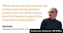 "I oni su dio onih koji su otišli, koji nisu ni tada a ni sada mislili da se nešto može poboljšati. Shvatili su da ne mogu puno postići u Crnoj Gori, da se ne može doći do izražaja. Upravo tako, obeshrabreno, i sama se osjećam".
