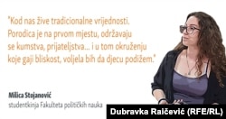 Iako je obeshrabrena i profesionalno sebe ne vidi u Crnoj Gori za 10 godina, studentkinja Milica Stojanović smatra da je crnogorsko društvo dobro za porodicu: