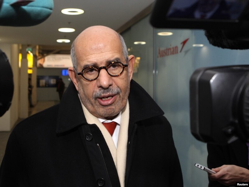 Dobitnik Nobelove nagrade za mir Mohamed ElBaradei razgovara sa novinarima pre odlaska u Kairo, Beču, 27. januar 2011.