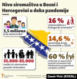 Nepovoljne demografske karakteristike BiH, povećanje broja zaraženih i teško političko okruženje mogu takođe pogoršati uticaje pandemije i uzrokovati čak i veći pad BDP-a, nego što se trenutno procjenjuje, navodi se.