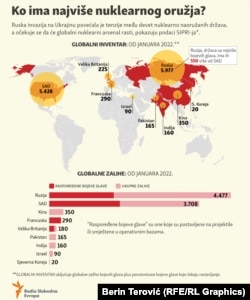 Pod "sva sredstva koja su nam na raspolaganju", Putin je, naravno, mislio na ruski nuklearni arsenal – koji je, zajedno sa arsenalom Sjedinjenih Američkih Država, jedan od dva najveća u svetu 30 godina nakon završetka Hladnog rata, piše redakcija Radija Slobodna Evropa na engleskom jeziku.