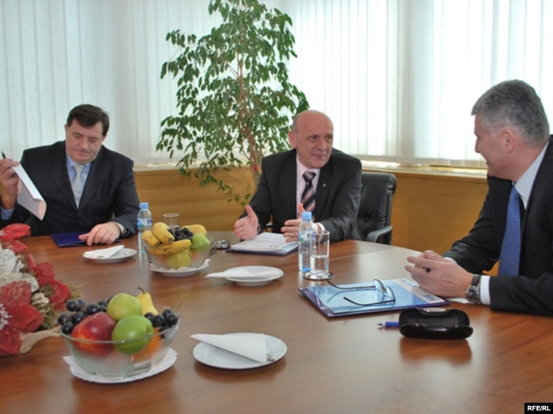 Lideri HDZBiH, SADBiH i SNSD-a Dragan Čović, Sulejman Tihić i Milorad Dodik tokom pregovora o reformama, mart 2009