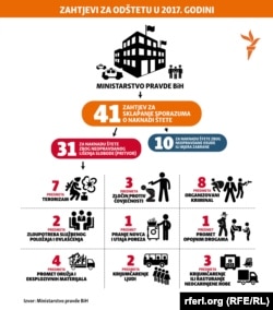 U 2017. godini Ministarstvo pravde BiH je, kako je potvrđeno za Radio Slobodna Evropa, zaprimilo ukupno 41 zahtjev za sklapanje sporazuma o naknadi štete. Od toga, 31 zahtjev za naknadu štete zbog neopravdanog lišenja slobode, sa sedam zahtjeva osumnjičenih za krivično djelo terorizam.