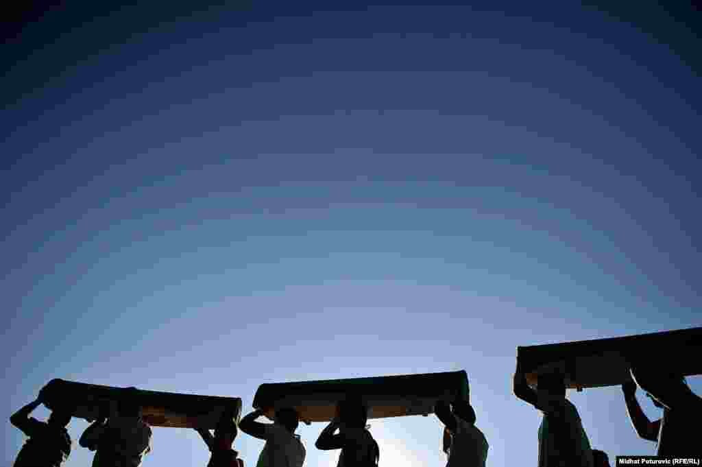 U Memorijalni centar Potočari stiglo je oko deset hiljada učesnika Marša mira. Zajedno sa porodicama, prenijeli su tabute sa posmrtnim ostacima 136 žrtava genocida od nekadašnje Fabrike akumulatora do Musale, gdje će biti održan vjesrki obred. Svi oni ostaće u Potočarima, kako bi prisustvovali kolektivnoj dženazi, a porodice žrtava u subotu će se poslijednji put oprostiti od svojih najbližih, njih 136 koji će biti ukopani. 10. juli 2015