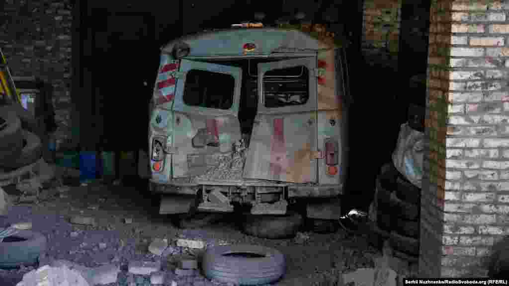 Medicinski radnik posmatra ambulantna kola koja su oštećena u raketnom napadu u Bahmutu.