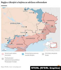 Administracije pod kontrolom Moskve u regijama Lugansk, Donjeck, Herson i Zaporožje održavaju iznenadna glasanja počevši od 23. septembra što je u suprotnosti s Poveljom Ujedinjenih nacija (UN) jer se odigravaju u ratnim okolnostima.