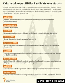 Evropska komisija je 12. oktobra preporučila da se BiH da status kandidata za punopravno članstvo u EU.