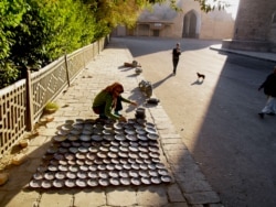 Prodavačica posuđa u povijesnom središtu Buhare, 2007.
