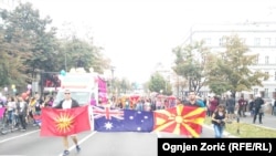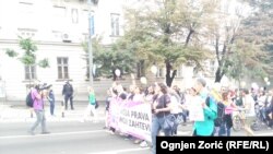 U toku je šetnja, kolona skreće u ulicu Kralja Milana. U koloni je više stotina ljudi, sa leve i desne strane nalaze se kordoni policije.