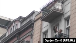Građani sa terasa pozdravljaju kolonu koja upravo stiže na Terazije, među učesnicima su ministarka za evropske integracije Jadranaka Joksimović, ministar kulutre i informisanja Ivan Tasovac, gradonačelnik Beograda Siniša Mali i poverenica za zaštitu ravnopravnosti Brankica Janković.
