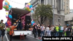 U toku Parada ponosa. Već tradicionalno, krenula je šetnja ulicama grada, uz jake policijske snage koje je obezbeđuju. Deo centra nadleće i helikopter.