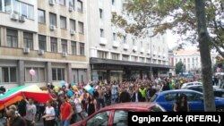 Parada ponosa upravo je završena, učesnici su još uvek na platou ispred Skupštine Beograda.