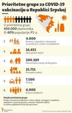 Prioritetne grupe za COVID-vakcinu u Republici Srpskoj