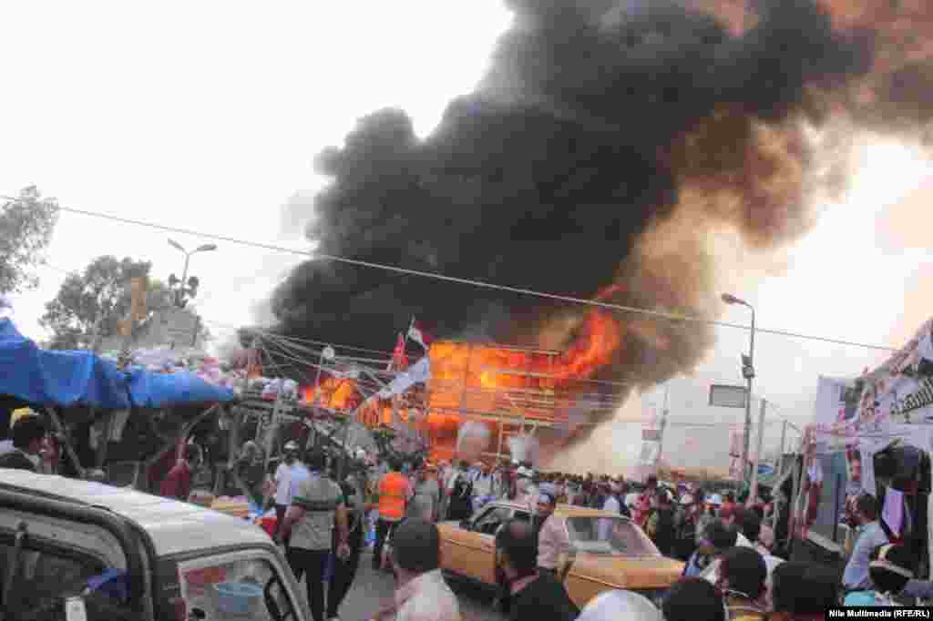 Policija je preuzela kontrolu nad oba kampa u Kairu u kojima su nedeljama protestovale pristalce svrgnutog predsednika Mohameda Morsija. U sukobima prilikom akcije, koji su se proširili i na druge gradove, poginulo je najmanje 278 ljudi. Proglašeno je vanredno stanje, a potpredsednik Muhamed El Baradej je podneo ostavku.