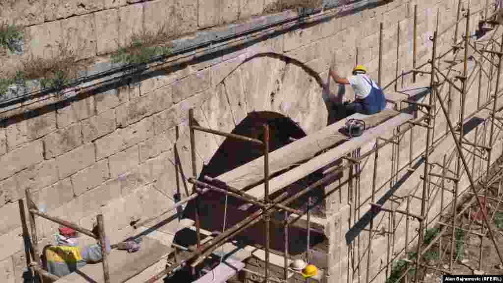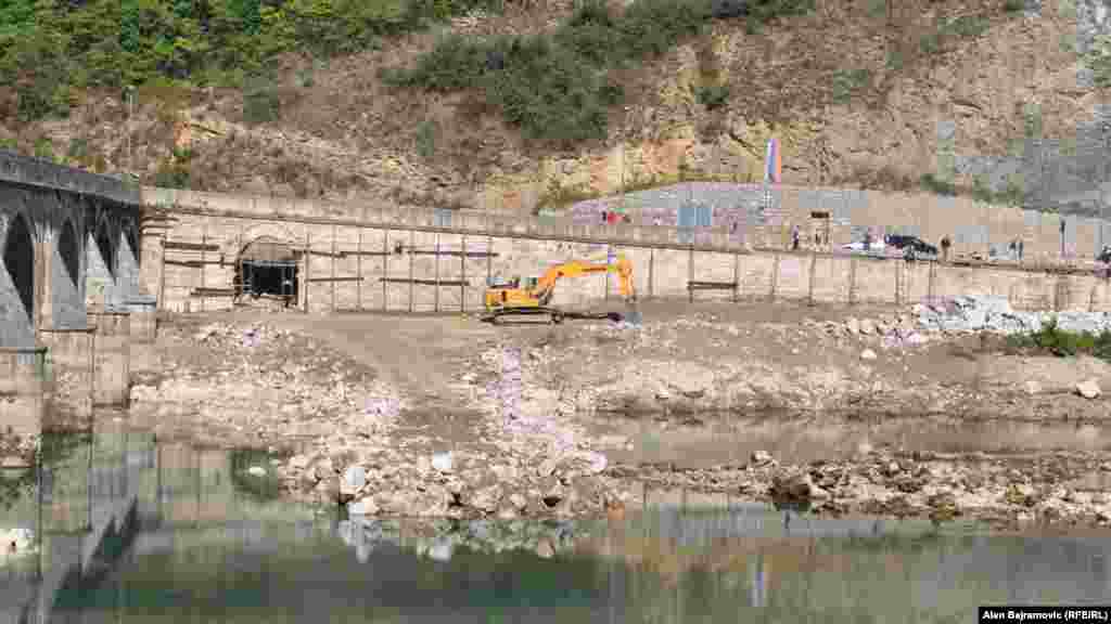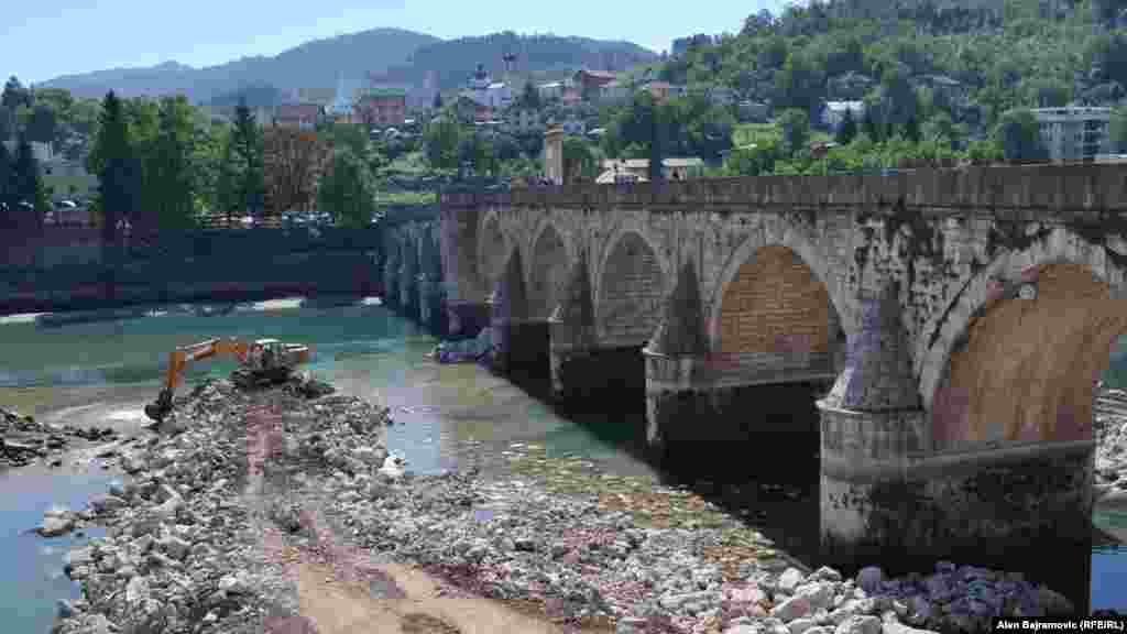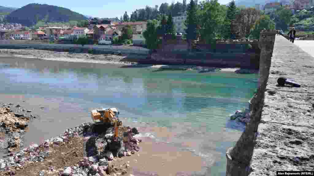 Počela je rekonstrukcija jedne od najvažnijih historijskih znamenitosti iz doba Osmanskog carstva, mosta Mehmed-paše Sokolovića u Višegradu. Most je sagrađen između 1571. i 1577. godine, i povezivao je Bosnu sa Carigradom iznad rijeke Drine. Gradio ga je jedan od najznamenitijih arhitekata tog vremena, Kodža Mimar Sinanu. Foto: RSE / Alen Bajramović, 6. septembar 2013.