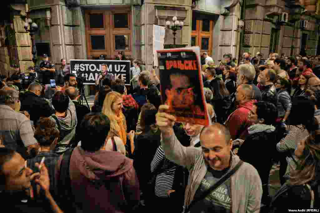 Skup podrške novinaru i glavnom i odgovornom uredniku Vranjskih Vukašinu Obradoviću, koji je zbog pritisaka koji su doveli do gašenja tih novina stupio u štrajk gladju, održan je oko 20 časova ispred Vlade Srbije okupljanjem novinara i javnih ličnosti.