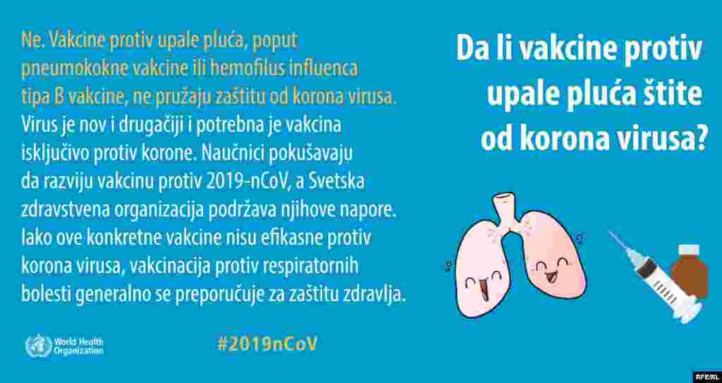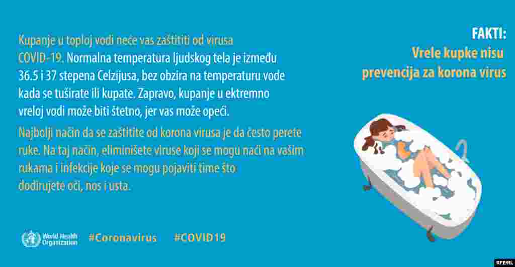 Koliko korona virus opstaje na površinama, da li je otporan na tople ili hladne vremenske uslove, da li su deca zaista zaštićena a stariji ugoženi? Ovo su samo neka od pitanja na koja Svetska zdravstvena organizacija kroz infografike odgovara javnosti.