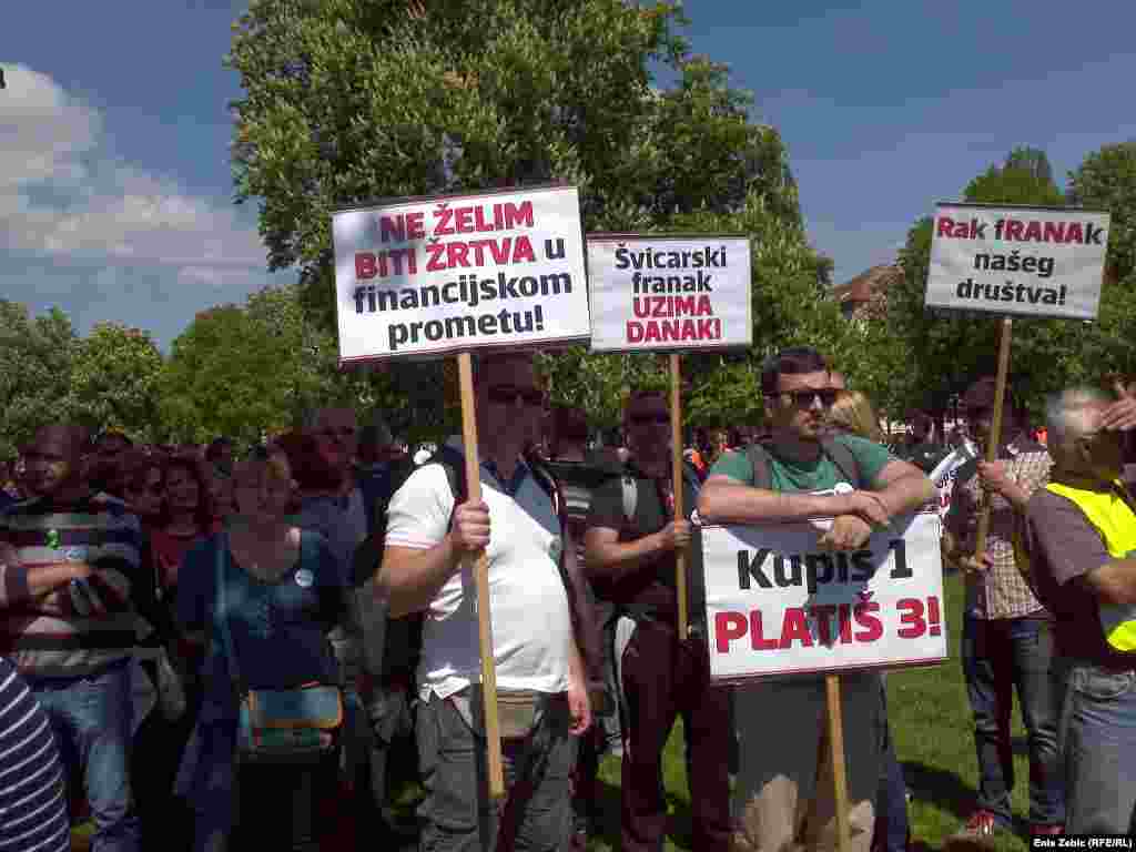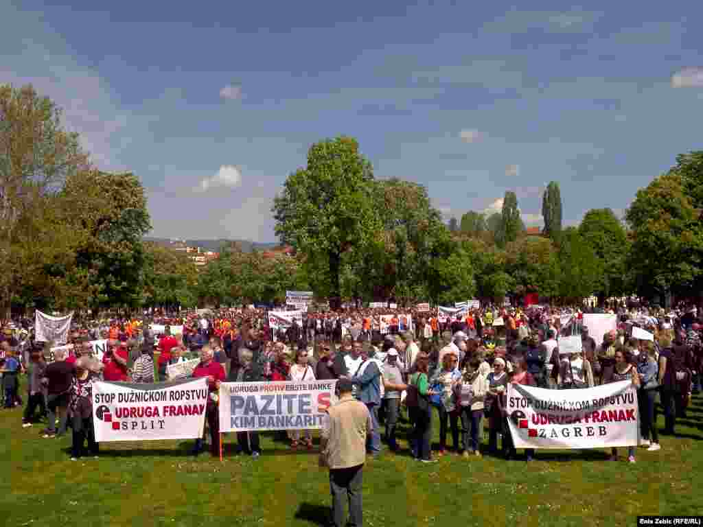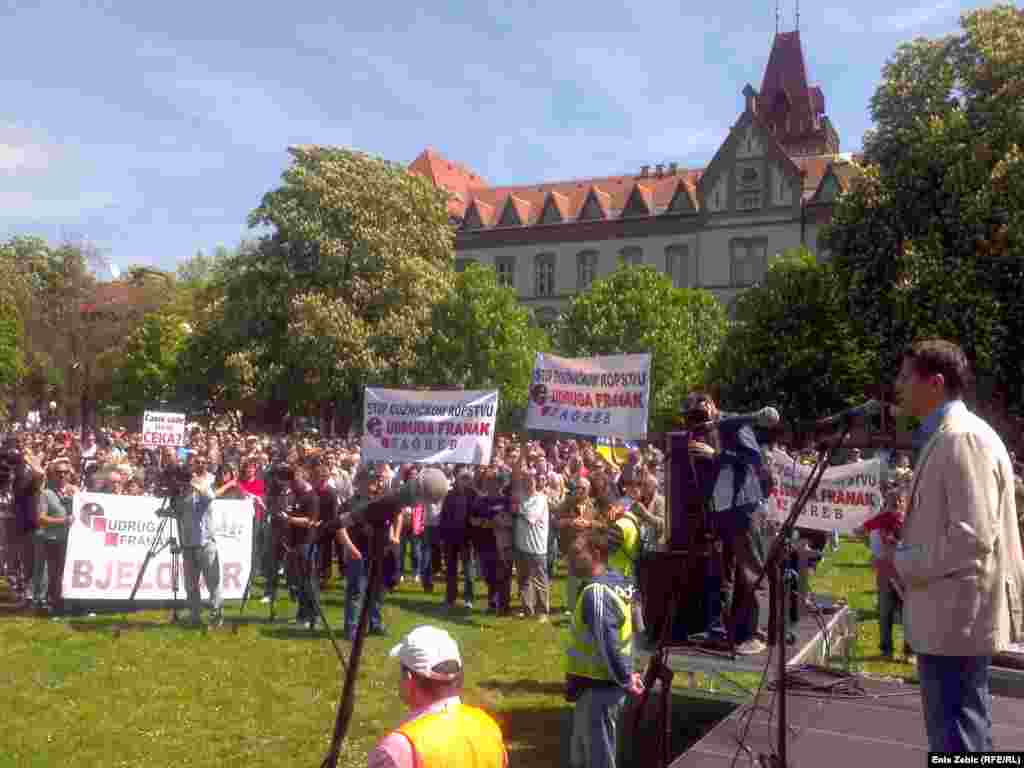 Pet do šest tisuća ljudi po policijskoj procjeni, a gotovo dvostruko više po procjeni organizatora prosvjedovalo je danas protiv nerada Hrvatske narodne banke i nerada Vlade u zaštiti građana koji imaju kredite u švicarskim francima.