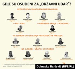 Osuđeni su i ruski državljani Eduard Šišmakov na 15 godina a Vladimir Popov na 12 godina zatvora, koji nijesu bili dostupni crnogorskom pravosuđu.