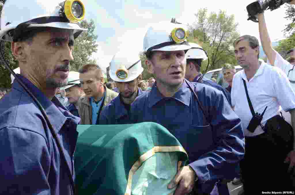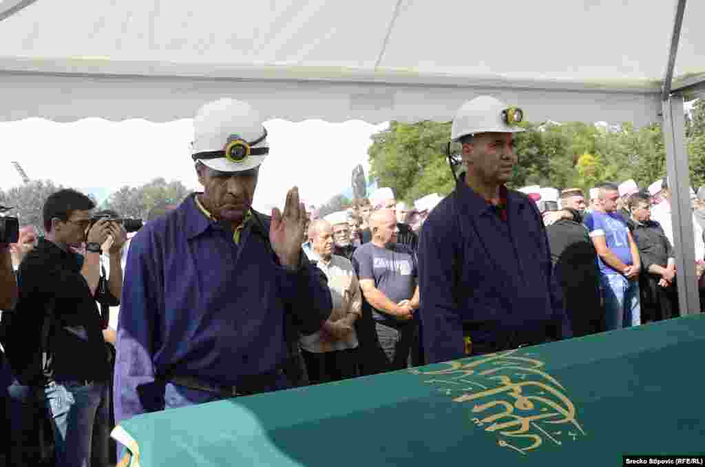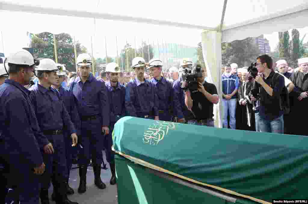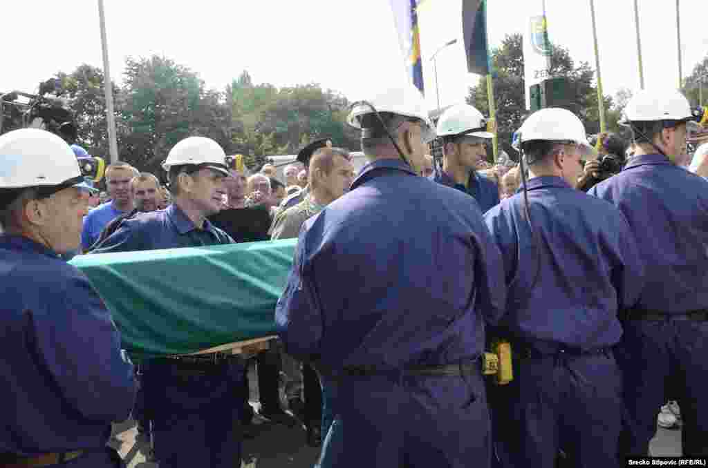 Zenica se oprostila od Hajrudina Bradaraca, Mehemeda Dizdarevića, Mehmedalije Halilovića, Fahira Halača i Fejze Isakovića, rudara jame Raspotočje Rudnika mrkog uglja Zenica koji su poginuli u rudarskoj nesreći uzrokovanoj gorskim udarom. 8.9.2014. RSE foto / Srećko Stipović