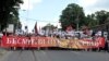 Na sedamnaest godina od početka NATO bombardovanja Srbije u Beogradu su održani miting radikala i protest Srpskog nacionalnog fronta.